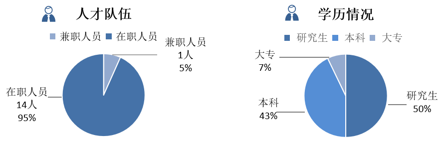 中心的持續(xù)穩(wěn)步發(fā)展離不開所有成員,尤其是專業(yè)團隊的努力。除兼職人員外,目前中心擁有員工14人;其中,研究生7人,本科生6人。