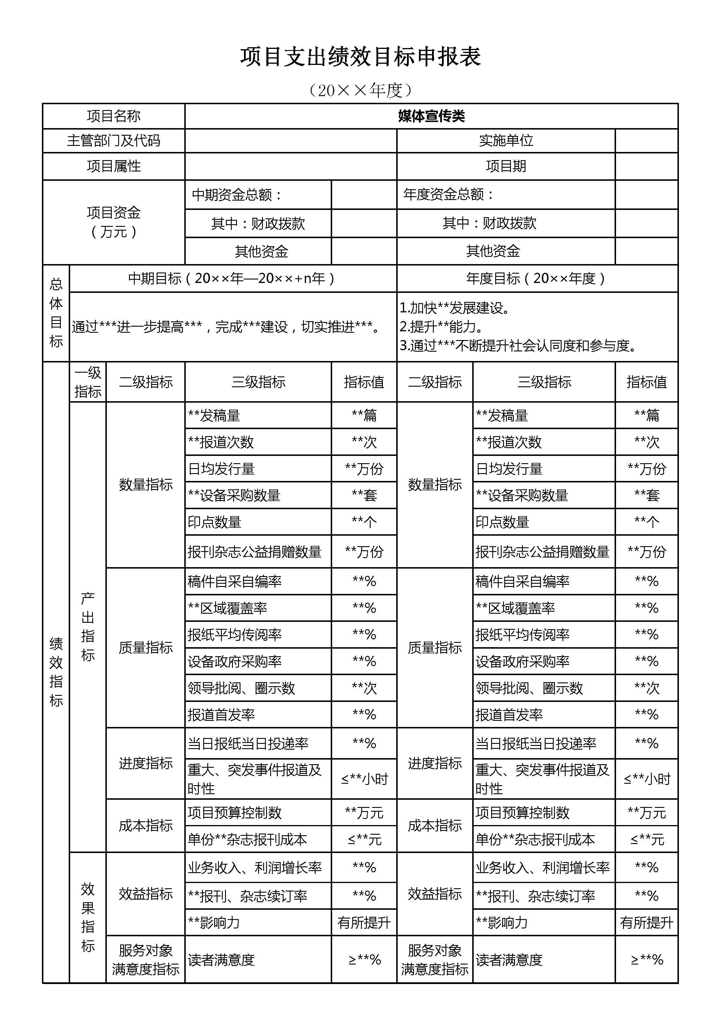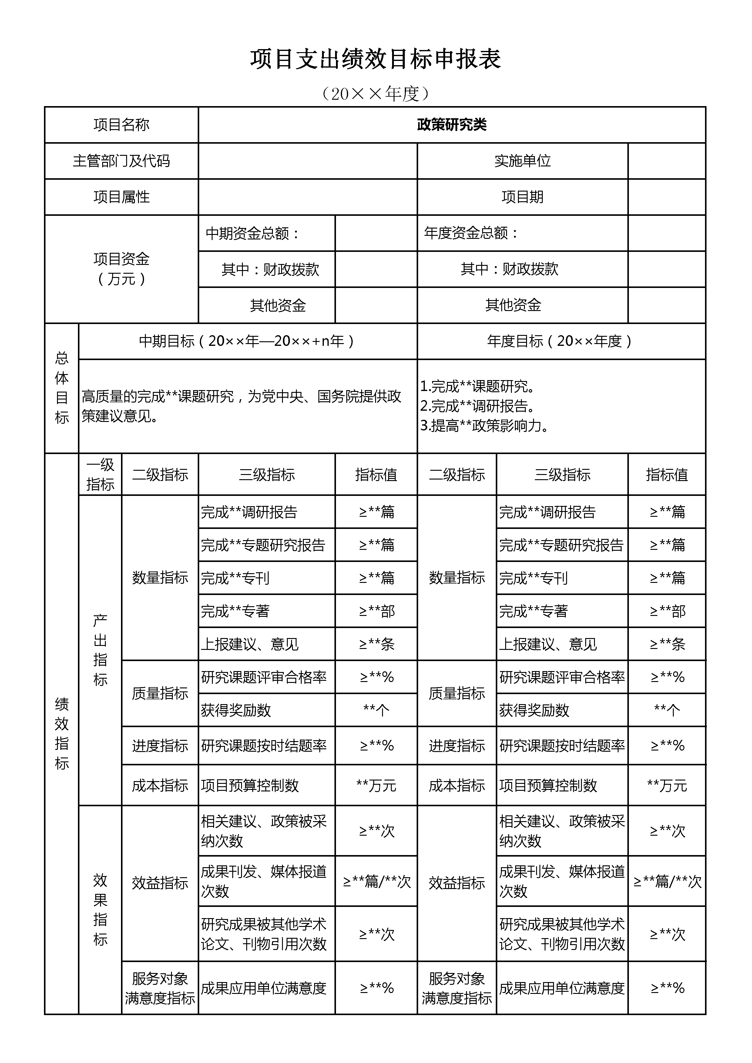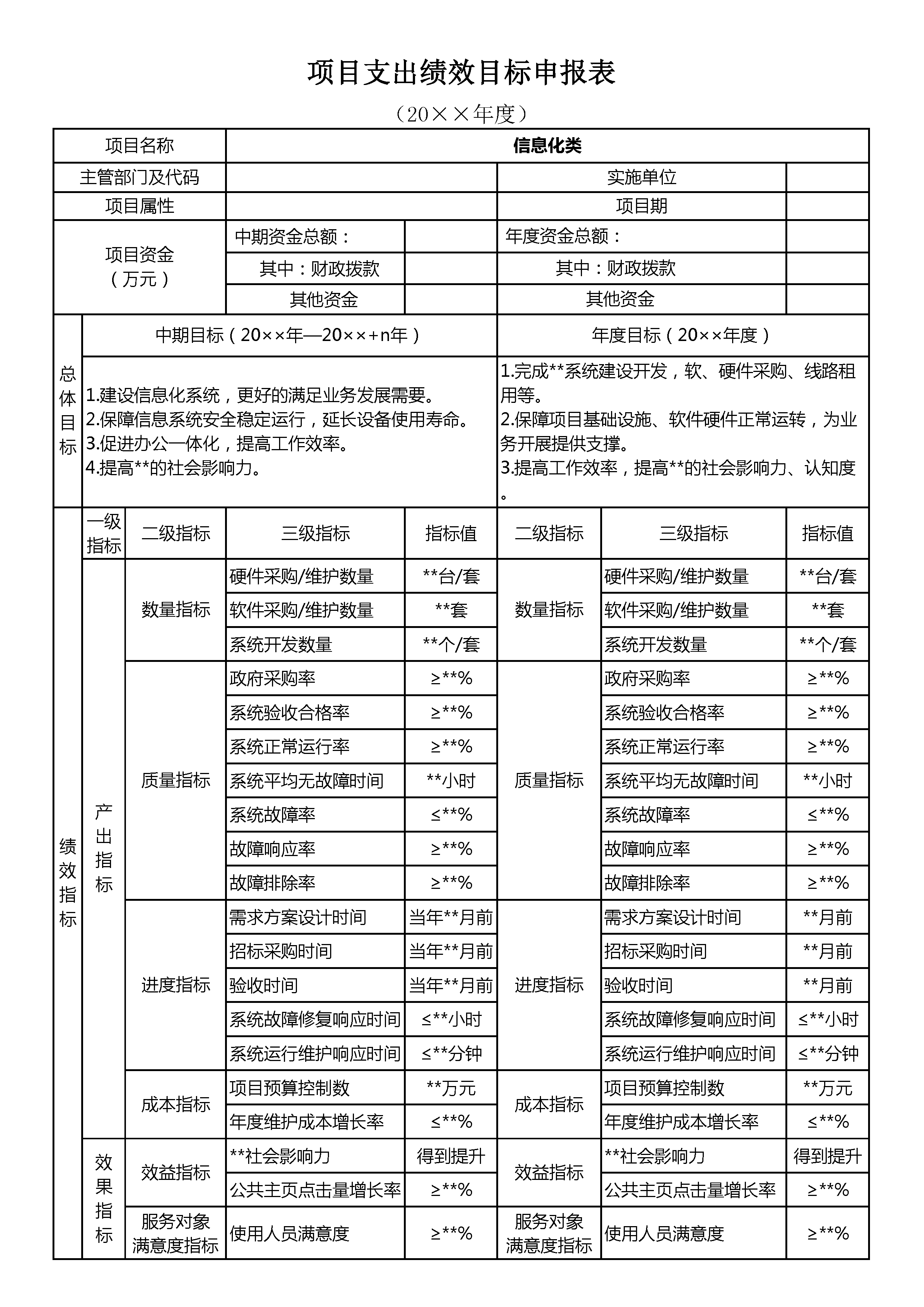 - 項(xiàng)目支出績(jī)效目標(biāo)填報(bào)模板(部分)